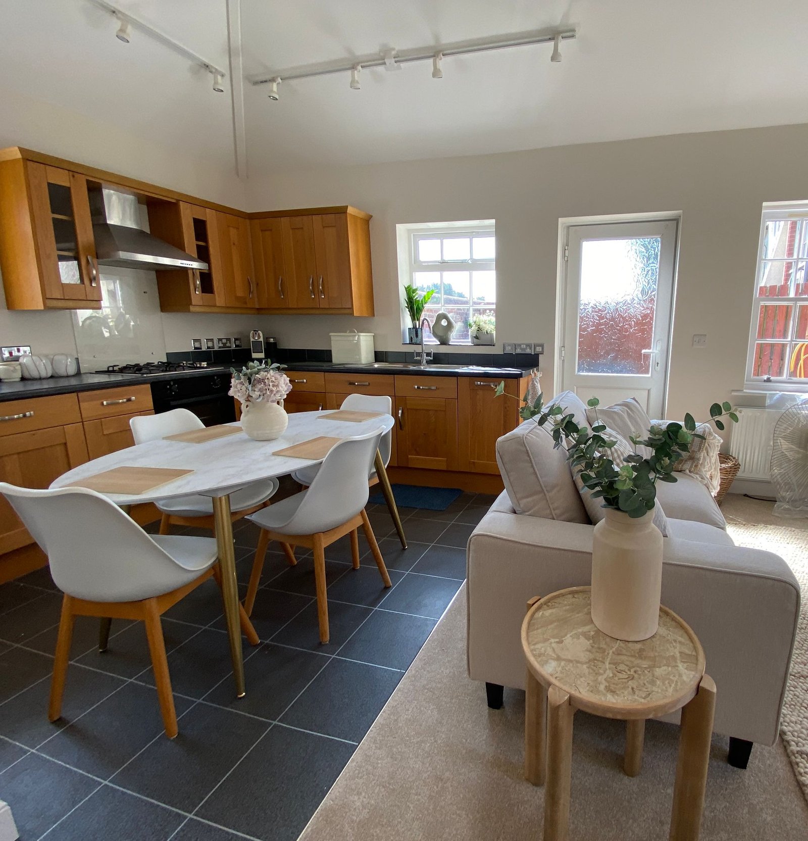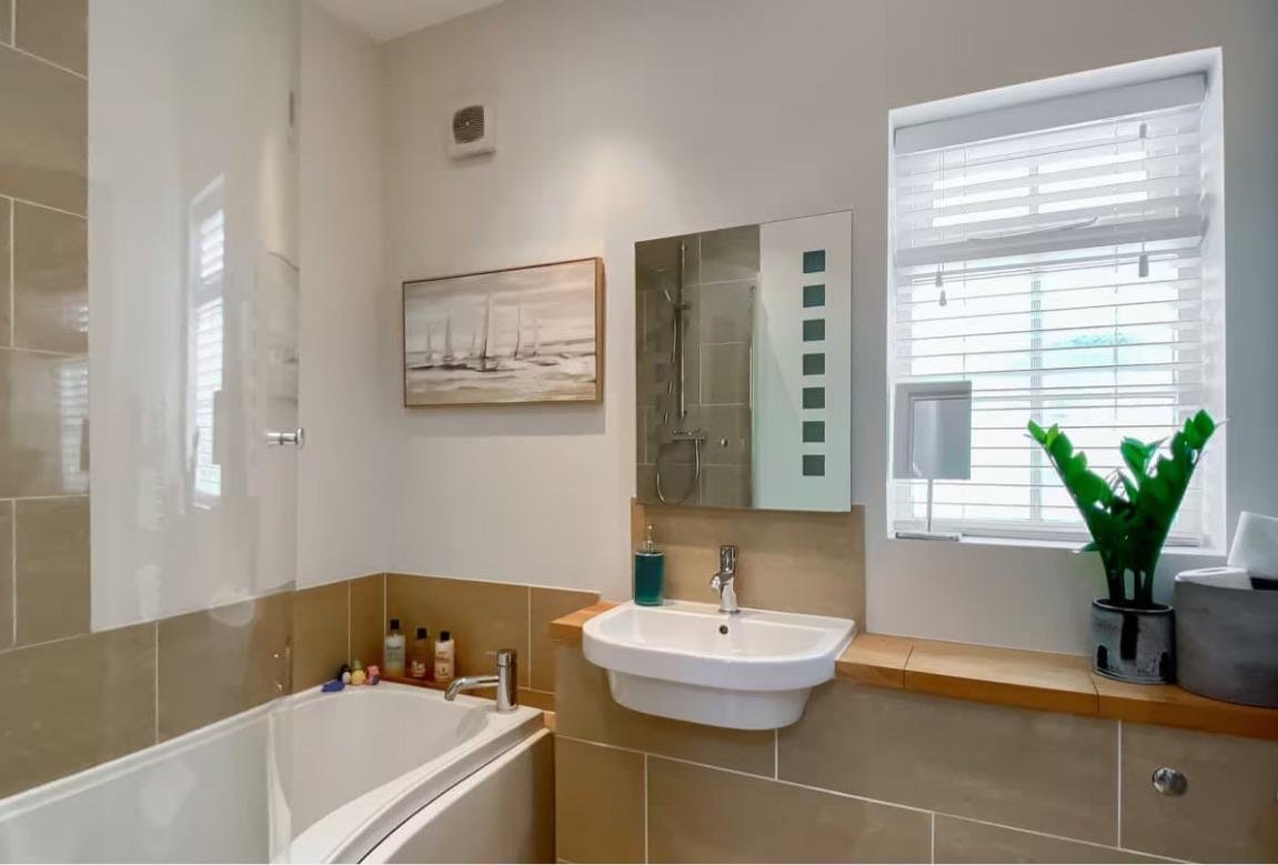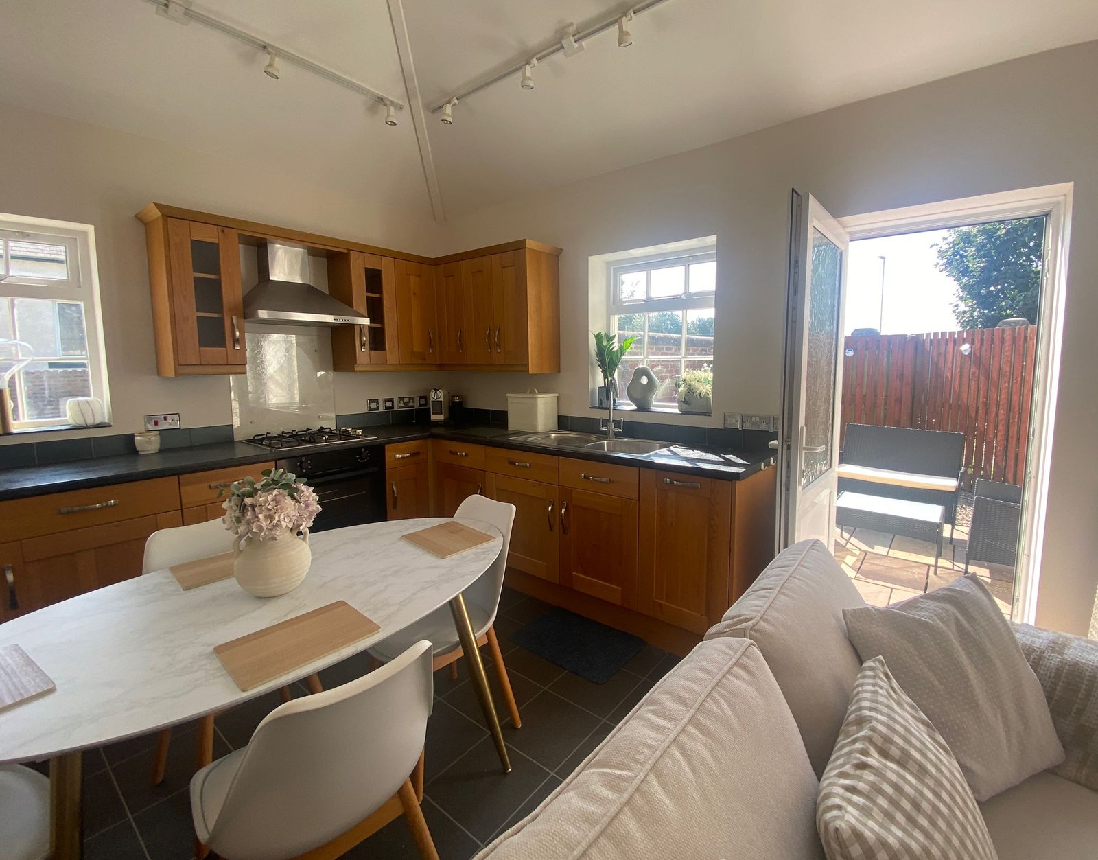 Step outside to the private rear garden with a seating area, ideal for al fresco dining or simply enjoying the fresh sea air.