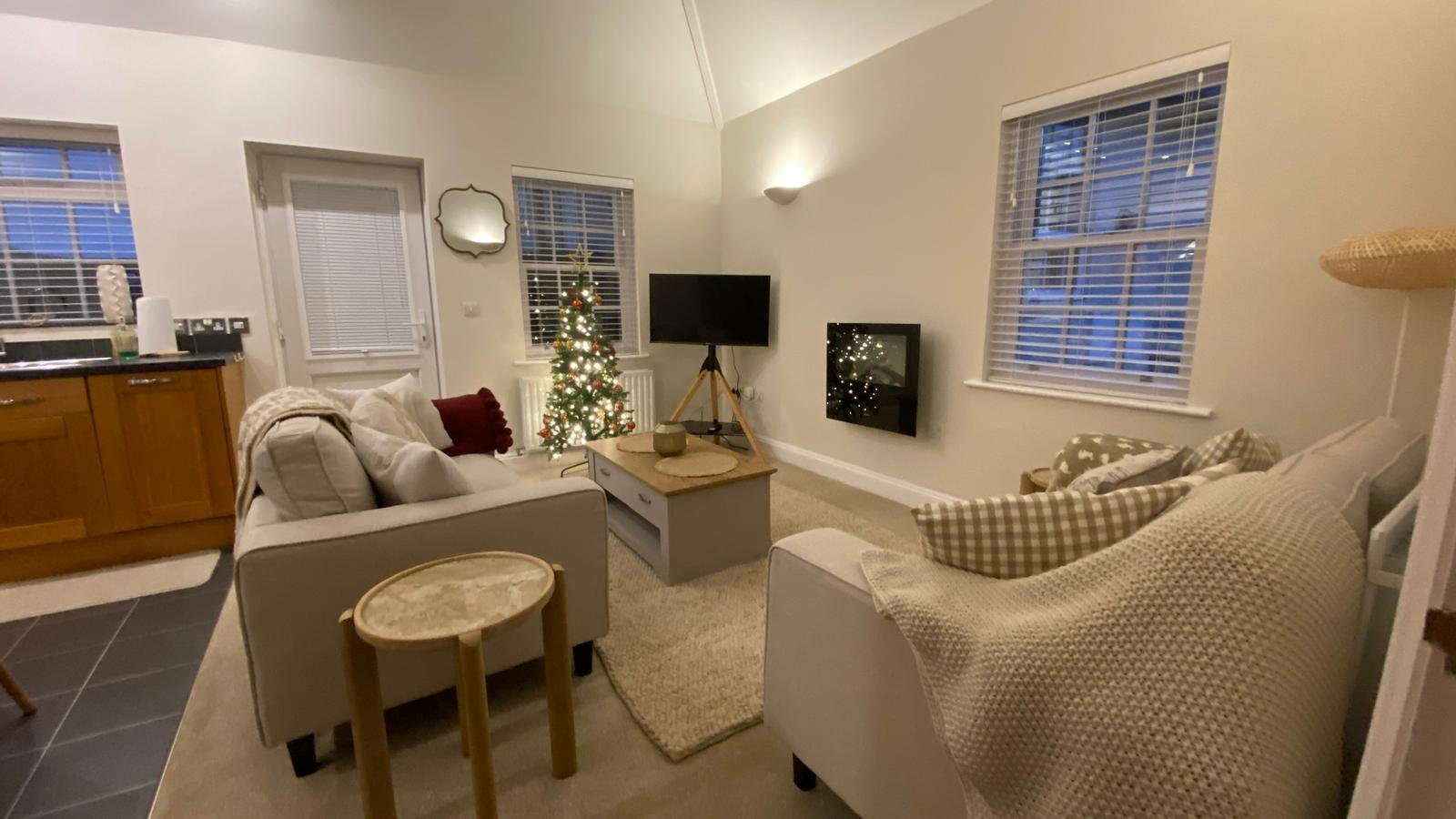 The family bathroom features a convenient shower over bath. The heart of the bungalow is its large open-plan kitchen, dining, and living area. The kitchen is fully equipped with modern appliances, ensuring you have everything you need to prepare delicious meals. The airy dining area is perfect for enjoying those meals together, while the comfortable living area provides a cosy space to unwind in after a day of exploration.